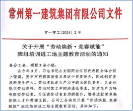 新質(zhì)生產(chǎn)力的第一要素是更高素質(zhì)的勞動者,為了提升一線作業(yè)人員的技能水平,常州一建工會創(chuàng)新活動模式,緊盯安全紅線,在全公司范圍內(nèi)組織開展以“勞動煥新、競賽賦能”為主題的安全生產(chǎn)班前會技能競賽。